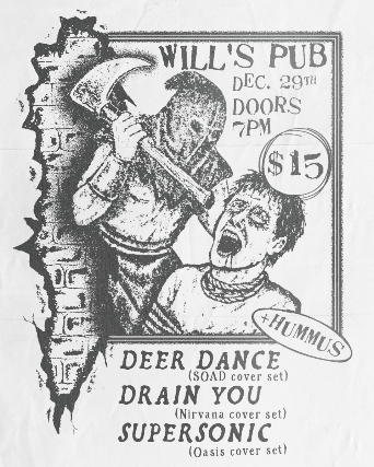 Deer Dance (System of a Down Cover Set), Supersonic (Oasis Cover Set), and Drain You (Nirvana Cover Set)