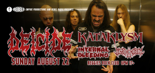 Reggies Rock Club  6pm doors / 7pm show / 17+  $25 advance / $30 day of show Empire Productions and Rebel Radio Present:  Deicide Kataklysm Internal Bleeding Begat the Nephilim