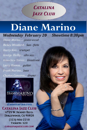 Catalina Jazz Club is proud to welcome Dazzling Jazz Vocalist & Pianist sensation Diane Marino for a one night only debut performance at Catalina as she brings the music of her critically-acclaimed new release, "Soul Serenade – The Gloria Lynne Project. Diane will also perform selections from her previous CD’s including songs from The Great American Song Book, Jazz Standards and Brazilian Jazz.