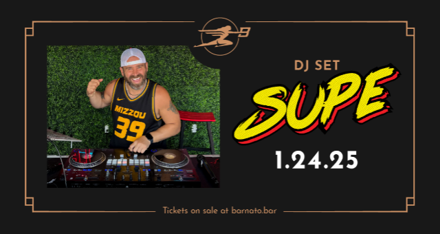 Lake of the Ozarks fave resident DJ SUPE brings some 'lake-life' to a cold Nebraska January Friday night... taking the Barnato stage from 9pm to midnight!