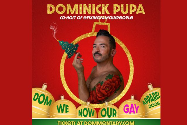 • Dominick Pupa is a comedian, nightclub act and drama queen. He cohosts the hit podcast FIXING FAMOUS PEOPLE, appears weekly on Lifetime’s THERESA CAPUTO: RAISING SPIRITS and portrays Mister P on the Roku series, LO. His acclaimed holiday show, DOM WE NOW OUR GAY APPAREL, is a can’t miss annual staple performed around the country.