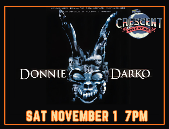 Dive into the strange and unforgettable as the Crescent Theater presents the cult classic Donnie Darko this Halloween Weekend! This mind-bending film weaves together psychological suspense, dark humor, and a touch of the supernatural, leaving audiences questioning reality long after the credits roll. With its iconic soundtrack, haunting visuals, and twisty storyline, Donnie Darko is a must-see on the big screen for fans of thought-provoking, offbeat cinema. Don’t miss the chance to experience this modern classic in all its eerie, cinematic glory!