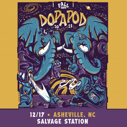 Symmetry defines Dopapod. The band and each of its seven albums sports a palindromic name, meaning it can be read the same forward as backward. More than that, balance has become the band’s modus operandi, with the group consciously juggling the darker tones of heavy rock with lighthearted humor; synthesizing tastes of funk, jazz, bluegrass, electronica, and more within their complex improvisational compositions. During live shows, Dopapod is known for taking fans on a full-out journey, guiding attendees through periods of frenzied dance contrasted with moments of thoughtful contemplation.