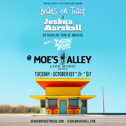 Moe's Alley presents a special co-headlining bill featuring Beans on Toast and Jeshua Marshall with special guests Diggin' Trails!