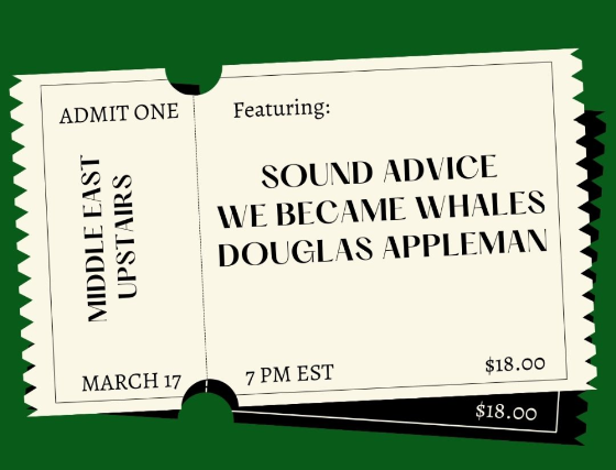 The Middle East presents: - Douglas Appleman, We Became Whales, Sound Advice, 18+, $18, 7pm doors