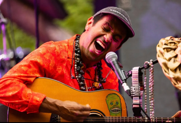 “Drew Martin is a songwriter from Maui, Hawaii. His sound is a mix of folk/blues and Hawaiian slack key key guitar. Songs inspired by nature. Multi instrumentalist playing a variety of 12 string guitars, harmonicas, and ukulele. Expect some stompin’!”