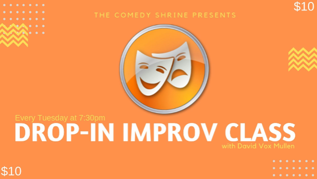 Starting Tuesday Nov 6th at 7:30pm, The Comedy Shrine is offering weekly “DROP IN” Improv classes with David Vox Mullen. If you’re interested in adding improv to your social or professional skill set, this is an excellent opportunity for you! Just $10 a week (pay as you go)
