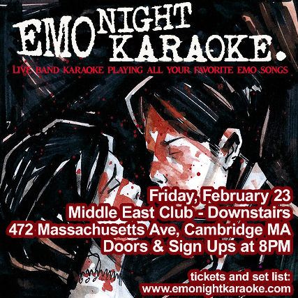 The Middle East presents: Emo Night Karaoke, 18+, $15 advance / $18 day of show online / $22 door, 8pm doors