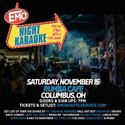 Emo Night Karaoke with a live backing band on Friday, November 15 at Rumba Cafe