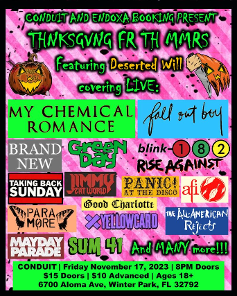 Emo / Pop Punk Cover Night w/ Deserted Will in Orlando
