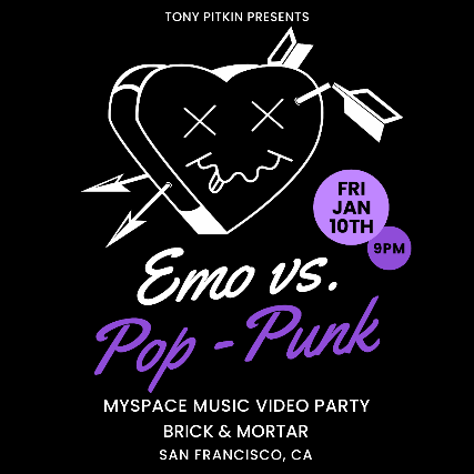 This Myspace Music Video Party is more than your average “Emo Night”…with music videos live on the big screen, photo ops with Tom, themed drink specials, and scream-alongs all night long!