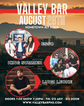 Esso burst onto the Phoenix music scene in 2024 with his acclaimed debut album ‘Everything You Ever Wanted’. Since then, he’s played dynamic sets at local favorites like Last Exit Live, 1227 Taproom, the Wednesday Wednesday showcase at Crescent Ballroom, Yucca Tap Room, and most recently The Nile Underground. Esso and his live band are bringing nostalgia-driven alt-rock to the masses with their high energy, experiential show.