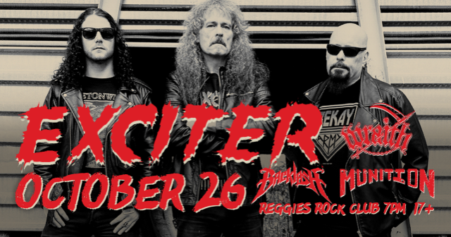 EXCITER is a Canadian speed metal band from Ottawa, formed in 1978 and are widely considered to be one of the first speed metal bands and a seminal influence of the thrash metal genre. Their 1983 debut record, Heavy Metal Maniac, is largely accepted as one of the first speed/thrash metal records and is quoted as being a main influence for some of the biggest names in metal today. Throughout the 80's the band released several pivotal records on Megaforce, Noise, & Music For Nations and toured with the likes of Motorhead, Mercyful Fate, Manowar, Megadeth, & Accept. The band currently consists of original members Dan Beehler (drums/vocals) & Allan Johnson (bass) who are joined by guitarist Daniel Dekay. Known for their energetic, tight, and deafening performances, the band plays material from across their entire legendary Beehler fronted catalog & have remained very active with shows all over the world.