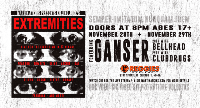 A live performance of Killing Joke’s “Extremities” album for the first time in 33 years to celebrate its 35-year anniversary. Featuring performers Pearson, Thwaite, Kline, Atkins, Silver, Busch, Blythe, Royale, and more! Event will also include a commemorative slideshow and guest speakers.
