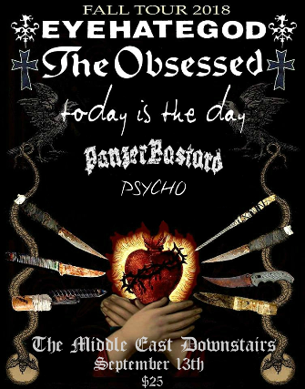 09/13/18 D: The Middle East & Grayskull Booking present: Eyehategod w/ The Obsessed, Today Is The Day, Panzerbastard, Psycho - 18+ $25 Advance / $25 Day of Show 7:00pm doors