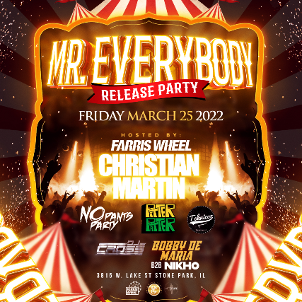 This party is going to be musical bliss! Farris Wheel Recordings big Boss Gene Farris has put together a stacked line up showcasing artists off his label. Every artist on this bill has a remix coming out for the smash hit single "Mr Everybody". Don't miss this event!