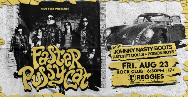Reggies Rock Club Friday, August 23rd 6:30pm doors | 7:30pm show | $25adv/$30dos | 17+ Riot Fest Presents: Faster Pussycat with  Johnny Nasty Boots Ratchet Dolls Poison Boys