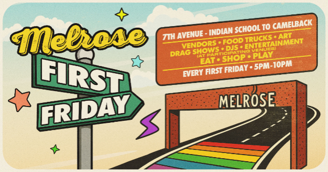 Melrose is rife with energy during the monthly First Friday when Melrose hosts the First Friday Melrose Market. The Melrose Market serves as a platform for artists to showcase and sell their works, while providing an opportunity for attendees to enjoy art, drag, music, food, and more in a safe, walkable environment. This curated event features locally made items from Arizona artists, including handmade crafts, fine art and vintage items, as well as food vendors, pop-up galleries, drag performances and other arts-related initiatives. With up to 25+ vendors monthly, the First Friday Melrose Market provides a special spotlight to celebrate local arts and culture.