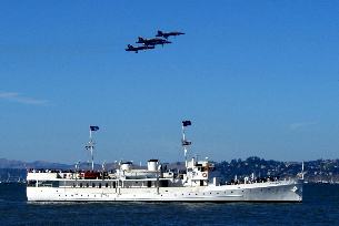 Cruise on the San Francisco Bay with the Blue Angels flying above the bay. The USS Potomac may even be saluted by the Blue Angels since we were a Presidential Yacht. Enjoy a gourmet box lunch and a hosted wine bar on this 3-3 1/2 hour cruise on board the "Floating White House" of Franklin D. Roosevelt.
