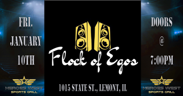 Flock of Egos is performing on Friday, January 10th at Heroes West in Lemont. Come early for dinner and stay for the show! This is a 21+ Event