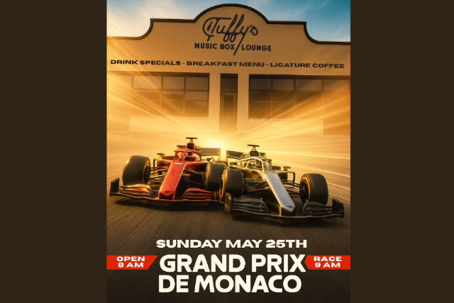 🏁 Start your engines! Join us at Tuffy’s Music Box for an F1 Monaco Grand Prix Watch Party on Sunday, May 25! 🏎️