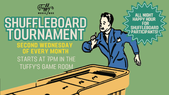 Ready to slide into some friendly competition? Join us on the Second Wednesday of Every Month for Tuffy’s Monthly Shuffleboard Tournament, where good times, great drinks, and bragging rights are always on the line. Whether you're a shuffleboard shark or just learning the ropes, this is the perfect way to spend your Wednesday evening!