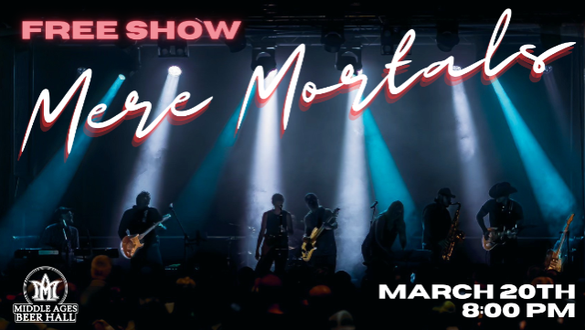 Free show alert 🚨 The Mere Mortals are coming to Middle Ages Beer Hall for a night of nonstop, danceable hits.