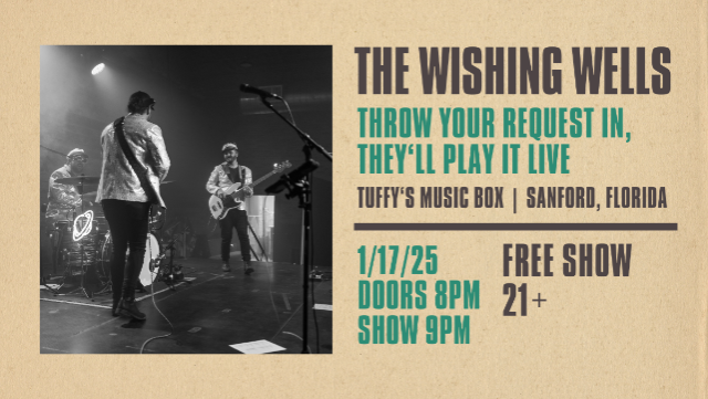 ๐ค๐ธ Get ready for a high-energy, sing-along party with The Wishing Wells at Tuffyโs Music Box on Friday, January 17th! ๐ This talented band can play anything you requestโfrom Journey to Taylor Swift, Lizzo to Zach Bryan, and so much more! ๐๐ถ