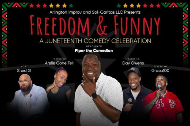 Arlington Improv and Sol-Caritas LLC present Freedom and Funny, a Juneteenth Comedy Celebration that blends culture, laughter, and community into one unforgettable night.