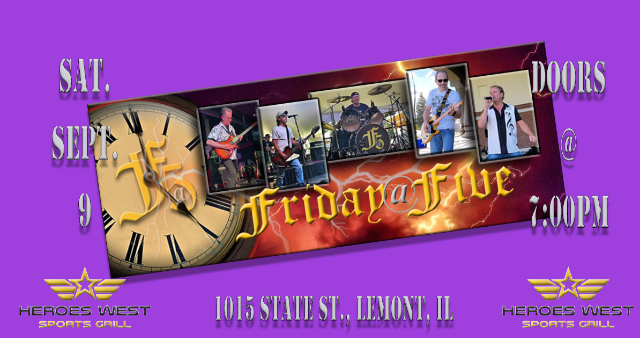 Friday at Five is performing on Saturday September 9 at Heroes West in Lemont. Come early for dinner and stay for the show!
