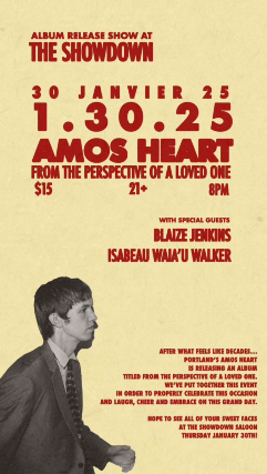 Please join us as Amos Heart and his crew of old and new musical friends get together this January to celebrate the release of his sophomore effort From The Perspective of a Loved One.