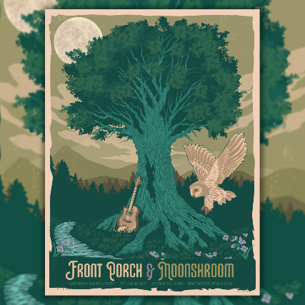 With their bandmates — Colby Allen Walter (electric guitar/mandolin) and Zach Bozeman (bass) — MoonShroom expands upon stylings of Americana, bluegrass, country, folk, and rock by blending genuine lyrics, tight vocal harmonies, and intricate instrumental conversation.