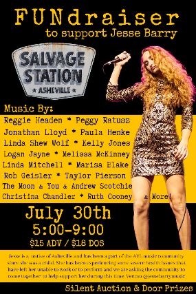 Jesse Barry has long been an Asheville favorite. She is a talented musician and bandleader who has been going through a protracted, serious, and disabling bout of chronic inflammatory disease aggravated by mold toxicity and other related issues. Many of Asheville’s top musicians are banding together to create a FUNdraiser at Salvage Station on Sunday, July 30, from 5-9 to help with Jesse’s medical and living expenses. The music community organizers include several well-known performers on the local, regional, and national scene, and many great musicians are performing to help support Jesse through this tough time.