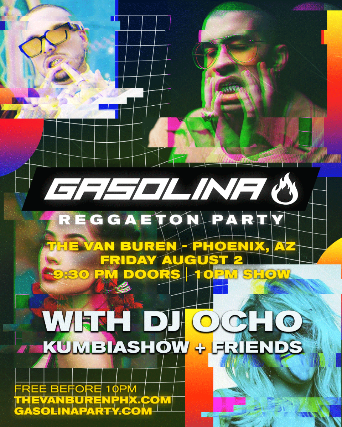 Ticket Prices: $10 Advance Price / $18 At the Door Price    We're bringing GasolinaParty back to Phoenix! They'll be playing Reggaeton, Cumbia, Latin Trip, Hip Hop, R&B and more! 2 DEEP and Rickstarr spin your favorites from artists like J Balvin, Bad Bunny, Ozuna, Daddy Yankee, Drake, Maluma, Karol G, Romeo Santos, Cardi B and many more! Admission is FREE before 10pm!   This event is 21+