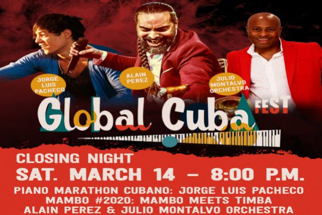 Miami Dade County Auditorium present Global Cuba Fest 2020 closing night featuring Piano Marathon Cubano by Jorge Luis Pacheco, and Mambo #2020 "Mambo meets Timba", by Alain Perez and Julio Montalvo Orchestra in Concert, on March 14th at 8:00 p.m. at Miami Dade County Auditorium.