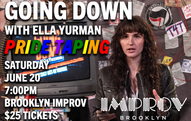 NYC’s favorite transgender political comedy news show returns to the Brooklyn Improv for a SPECIAL LIVE TAPING for Pride Month! Hosted by Ella Yurman and featuring the Going Down News Team + special guests TBA.
