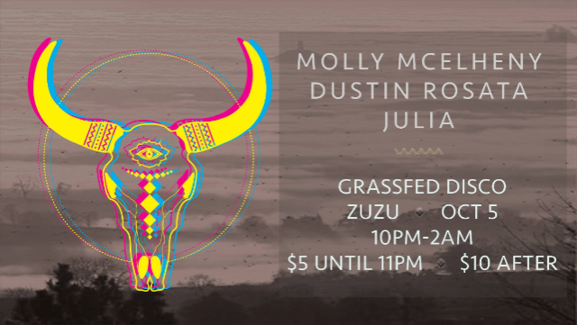 Grassfed Disco  Locally sourced, 100% natural- ZuZu, 21+, 10:00PM, $5 before 11:00, $10 after