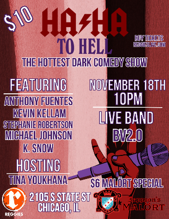 Michael Johnson is a Chicago based stand up comedian, writer, drinker and has lived in the city his entire life. Known as the punk rock comic he has produced many different shows throughout Chicago, most notably “The Open Heckle Mic.” You can find him either at a bar performing comedy, rock club producing comedy, or at a dive bar drinking. TRIPLE THREAT!