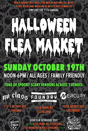 Black Market Records, The Miscreant and the Muse, and The Buckland Museum of Witchcraft and Magick present the 11th Annual HALLOWEEN FLEA MARKET at: