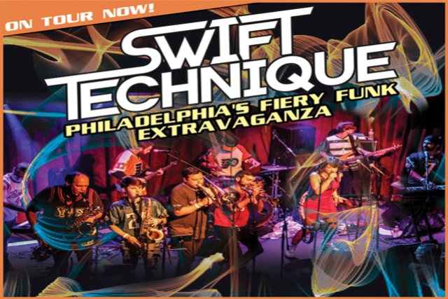 After forming in 2007 Swift Technique has steadily toured, performed, and recorded all over the country. The band’s sound has evolved at every step, with the members constantly pushing their performing and musical limits. They have shared the stage with all varieties of world-class acts including: The Meters, Wu-Tang Clan, Snarky Puppy, Charles Bradley, DJ Questlove, Soulive, Lettuce, Break Science, Fishbone, The Disco Biscuits, Turkuaz, The Motet, Preservation Hall Jazz Band, Karl Denson’s Tiny Universe, The Main Squeeze, Sister Sparrow & The Dirty Birds, Kermit Ruffins, Deep Banana Blackout, Kung-Fu, Orgone, Big Sam’s Funky Nation and Sophistafunk. In the past year they’ve also debuted at multiple major festivals including: Camp Bisco, Disc Jam, Xponential Fest, Domefest, and Rock & Roll Resort. They have successfully played at top-tier venues in some of the most musically rich cities in the country including: New York City, Boston, Baltimore, Washington DC, New Orleans, Nashville, Chicago, Milwaukee, Cincinnati, San Francisco, Los Angeles, San Diego and of course, their hometown, Philadelphia.