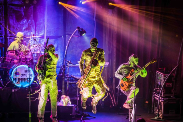 Some say they were cursed after deflowering a great Pharaoh’s daughter. Others claim they are reincarnated Grammy-Winning studio musicians. Regardless, HCTM’s mysterious personas, cunning song-craft, and unrelenting live show will bend your brain, and melt your face. Get ready, for Here Come The Mummies.