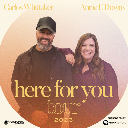 New York Times bestselling author and podcast host Annie F. Downs along with storyteller, speaker, and author Carlos Whittaker are HERE FOR YOU in their first ever co-headlining tour together Summer of 2023! This one-of-a-kind tour is making 12 stops across the nation with Annie and Carlos sharing their unique commentaries on today’s culture, celebrate their friends and followers who always show up for those in need and each other, showcase local businesses and heroes, and invite everyone to engage with them and each other on a deeply human level.
