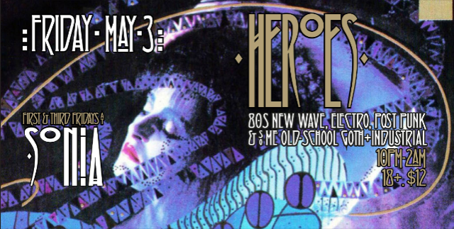 "HEROES" falls to Earth on FRIDAY MAY 3 at Sonia in Central Square, Cambridge MA.