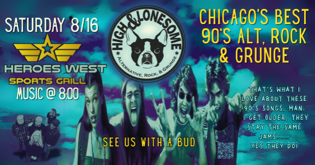 High and Lonesome is performing on Saturday, August 16th at Heroes West in Lemont. Come early for dinner and stay for the show! This is a 21+ Event