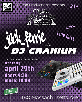 The Middle East & Hilltop Productions Presents: Jack_Ferrie & DJ Cranium - 21+, No Cover, 9:30 pm doors