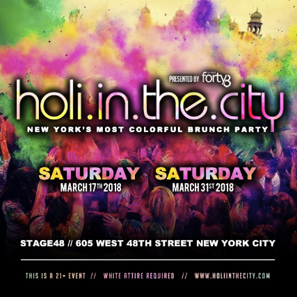 Join a beautiful crowd at Stage48 and get painted in reds, yellows, greens, pinks and enjoy the Festival of colors in style with food, drinks, and the amazing beats by NYC's Top Entertainers.