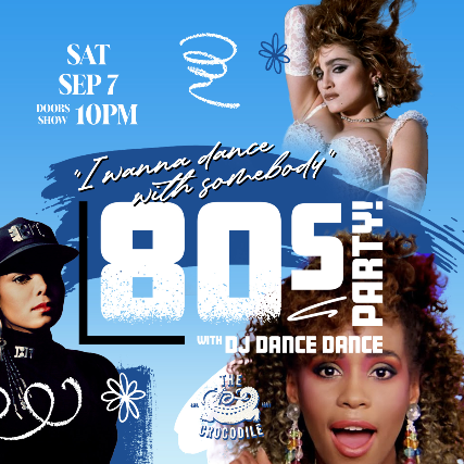 I Wanna Dance With Somebody - 80s Party comes to The Crocodile on Saturday, September 7th! We are going to throwback to your favorite 80s party jams from Whitney Houston, Janet Jackson, Madonna, George Michael and more! It’s all 80s Dance Music, all night long! Featuring DJ Dance Dance (Michael from Nite Wave)!