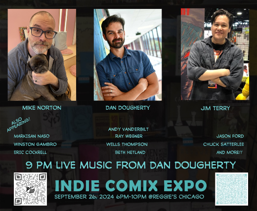 Over a dozen comic creators and the Dan Dougherty Band playing Live at the end of the show.