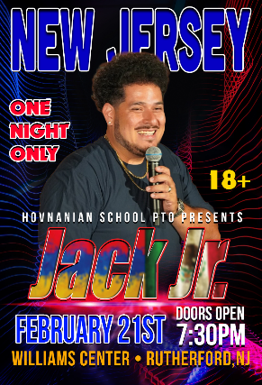 Get ready to laugh—Jack is Back! Hovnanian School PTO is thrilled to announce the return of Jack Jr. Comedy Night in 2026! Flying in all the way from California, Jack Jr. will take the stage alongside two hilarious opening acts, promising an evening packed with non-stop entertainment.