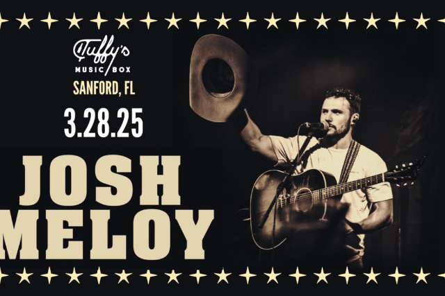 Tuffy’s Music Box Presents: Josh Meloy Sanford, FL at Tuffy’s Music Box & Lounge Friday March 28th, 2025 TICKETS ON SALE NOW! https://www.ticketweb.com/event/josh-meloy-tuffys-music-box-tickets/14048703?pl=tuffys DOORS: 8:00 PM SHOWTIME : 9:00 PM AGES: 18+ More about Josh Meloy: From the plains of Oklahoma, Josh Meloy has built his career brick by brick. A storyteller at heart, Meloy will capture your imagination with every song. From wearing out the dive bars of Oklahoma to more recently playing the historic Ryman Auditorium, Meloy has finally captured a national audience. With a brand new album “Where You Came From” released in June of 2024, he shows no signs of slowing down. Address: 200 Myrtle Ave, Sanford, FL 32771 www.TuffysMusicBox.com **We are committed to making our venue accessible to all patrons. Our facility meets all Americans with Disabilities Act (ADA) requirements, including accessible entrances and restrooms. Reserved tables are an upgrade subject to availability. If you have specific accessibility needs or requests, please don't hesitate to contact us in advance of your visit, or alert one of our staff members, and we will do our best to accommodate you.**